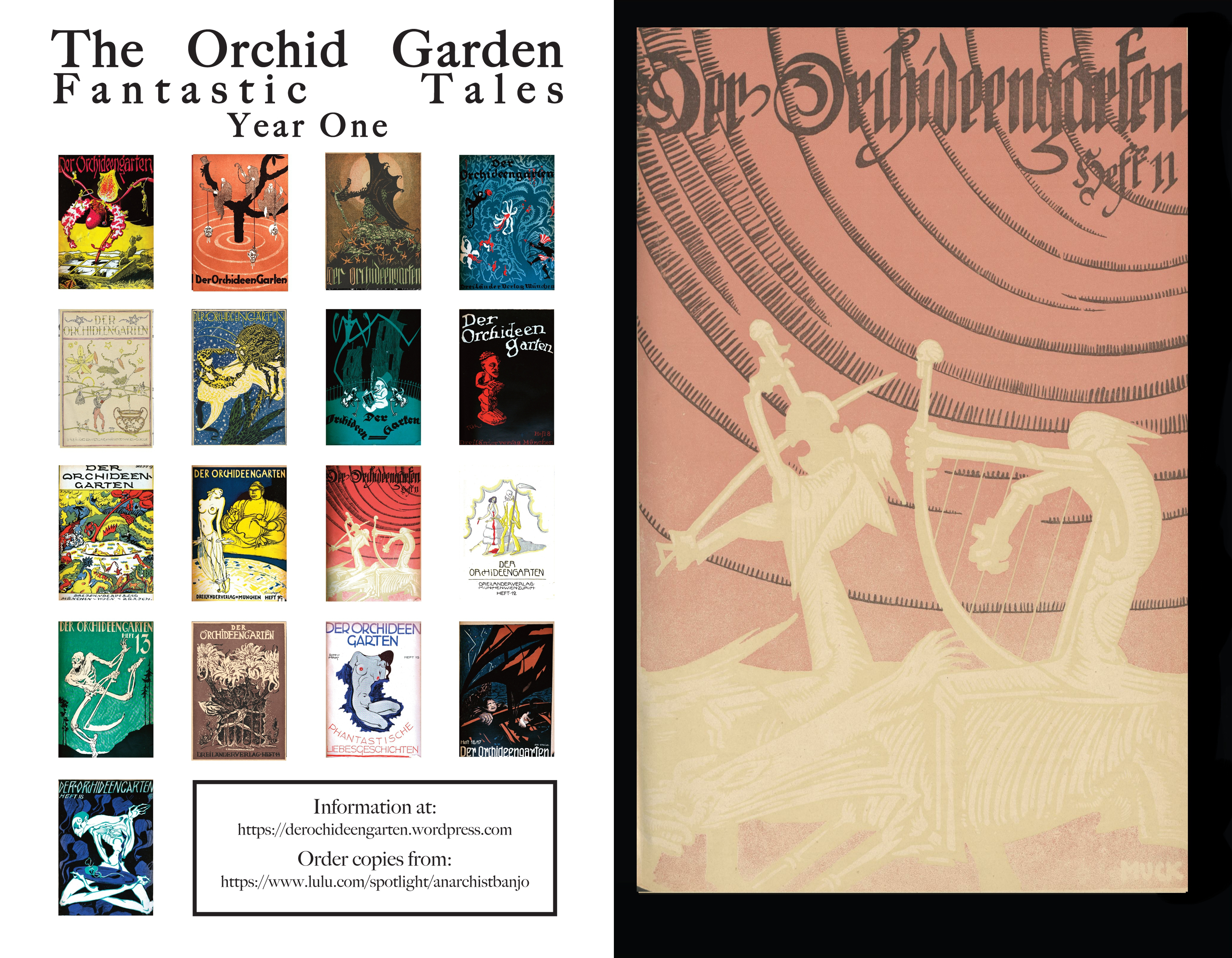 Der Orchideengarten is the world’s first illustrated fantasy magazine. This issue was published in the German language in 1919. This is the first English translation of these stories and contains the original cover and artwork. It includes: Death by Classified by Fyodor Sologub; OM! by Max Rohrer; Rumplebumm by Richard Theuringer; The Masked Ball by Hanns Reiser; The Deluge by Will Scheller. All translations by Joe Bandel; Layout and design by John Hirschhorn-Smith.
