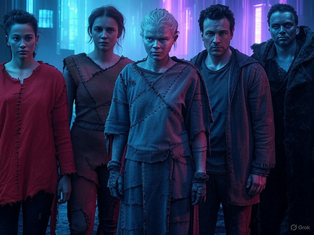 The reptilian threat was dust—Krypton’s wild surged triumphant—Jazz stood steady, wiry frame firm, buzzcut catching the neon glow, patched jacket rustling—her voice rang clear—“Web’s ours—we hold.” Milo flanked her, broad shoulders set, scarred lip steady, ink-stained hands pulsing art—his rumble pulsed—“Truth’s safe—we lead”—their eyes flared, Krypton’s digital guardians threading strength—urban folk cheered, harmony pulsing strong. Lumens stood radiant, her silver luminescent skin glowing fierce in a black dress, green hair flowing like vines, eyes flaring with earth’s core—shimmering wisps flared, weaving Krypton’s strength—her voice hummed—“Krypton thrives—I’ll stay.” Becca lounged against a wall, her tunic—dark, torn—stretched taut over broad shoulders, shaved head gleaming—blue eyes flared bright, axe propped beside her, yin’s wild humming low as she grinned—her breath flared warm. Rafe danced near the rift, his tunic—coarse, patched—flapping loose, hazel eyes glinting mischief—his knife spun wild, steel flashing, yang’s playful spark threading his wiry frame as he juggled a USB—a grin flashed sly. Cal stood tall by a glowing vine, his tunic—soft, faded—hanging easy, tangled brown hair brushing his brow—gray eyes steadied calm, spear light in his grip, yang’s quiet strength pulsing steady as he nodded farewell—his stance relaxed firm. Valentine sat near, his coat—thick, matted—bristling soft, yellow eyes glinting sharp—claws tapped linoleum, yang’s instinct rumbling low through his shaggy stride, a soft bark threading his calm.