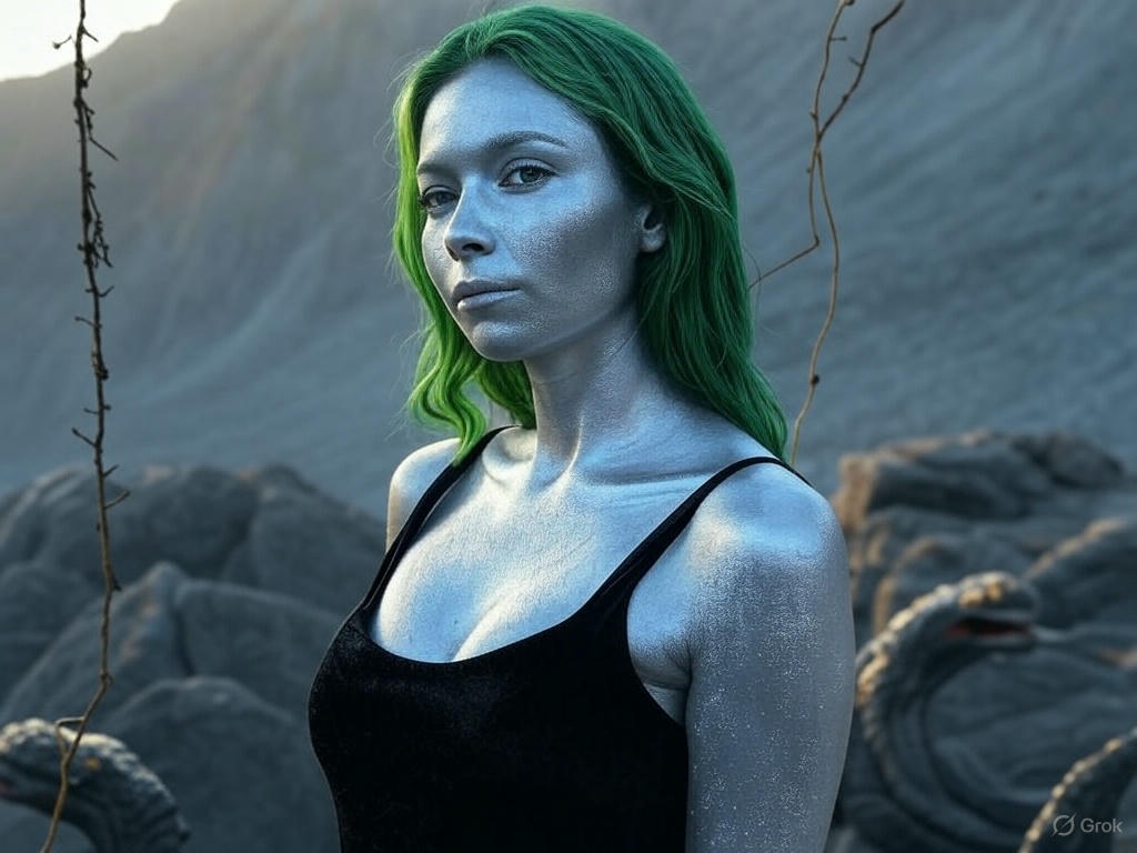 The reptilian drone was dust—the core shattered, wild’s hum surging triumphant—Lumens stood radiant, her silver luminescent skin glowing warm in a black dress, green hair flowing like vines, eyes flaring with earth’s core—shimmering wisps danced around her, weaving Argon’s strength through the cave. Howling Wolf leaned near, tall and lean, gray hair wild, stone blade gleaming—his growl softened—“Wild’s back—teach them.” Adam Gardner stood broad, scarred, crude staff pulsing faint—his rumble eased—“Time holds—grow it.” Becca sprawled on a stone slab, her tunic—dark, torn—stretched taut over broad shoulders, shaved head catching the glow—blue eyes flared calm, axe resting beside her, yin’s wild humming low as she stretched—her breath eased warm. Rafe perched on a stalactite, his tunic—coarse, patched—hanging loose, hazel eyes glinting mischief—his knife spun slow, steel glinting, yang’s playful spark threading his wiry frame as he tossed a pebble—a grin flashed sly. Cal leaned against a cave wall, his tunic—soft, faded—hanging easy, tangled brown hair brushing his brow—gray eyes steadied calm, spear propped beside him, yang’s quiet strength pulsing steady as he watched the vines—his stance relaxed firm. Valentine flopped near, his coat—thick, matted—bristling soft, yellow eyes glinting bright—claws tapped stone, yang’s instinct rumbling low through his shaggy stride, a soft huff threading his calm.