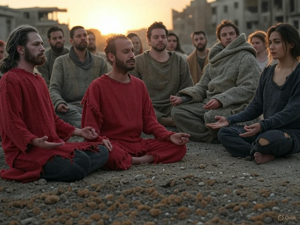 The circle glowed—rubble stilled—war’s clash softened—wild’s hum strengthened, Xenon’s cry surging—the crew sat firm with Lumens, Kael, Mara, and Lila in the warworn hub, meditating on love and peace, duality as the loving embrace of opposites weaving fierce against Xenon’s endless strife.