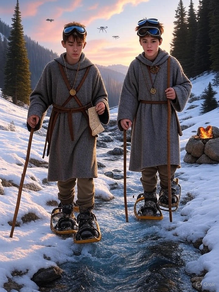 “What’s next?” Tobal asked. “It’s almost full moon—Osteria time, a big get-together,” Rafe said. “How many of us?” “150–200, varies. We meet, share stories, gossip, initiate newbies like you.” “Initiation?” “Official clan welcome.” “Our clan?” “Forget it for now. Let’s move.” Rafe mapped their route—30 miles north, adjusting for a cliff, using knots. A telepathic reptilian hiss echoed in Tobal’s mind from a shadow in the trees, leaving no tracks in the snow.