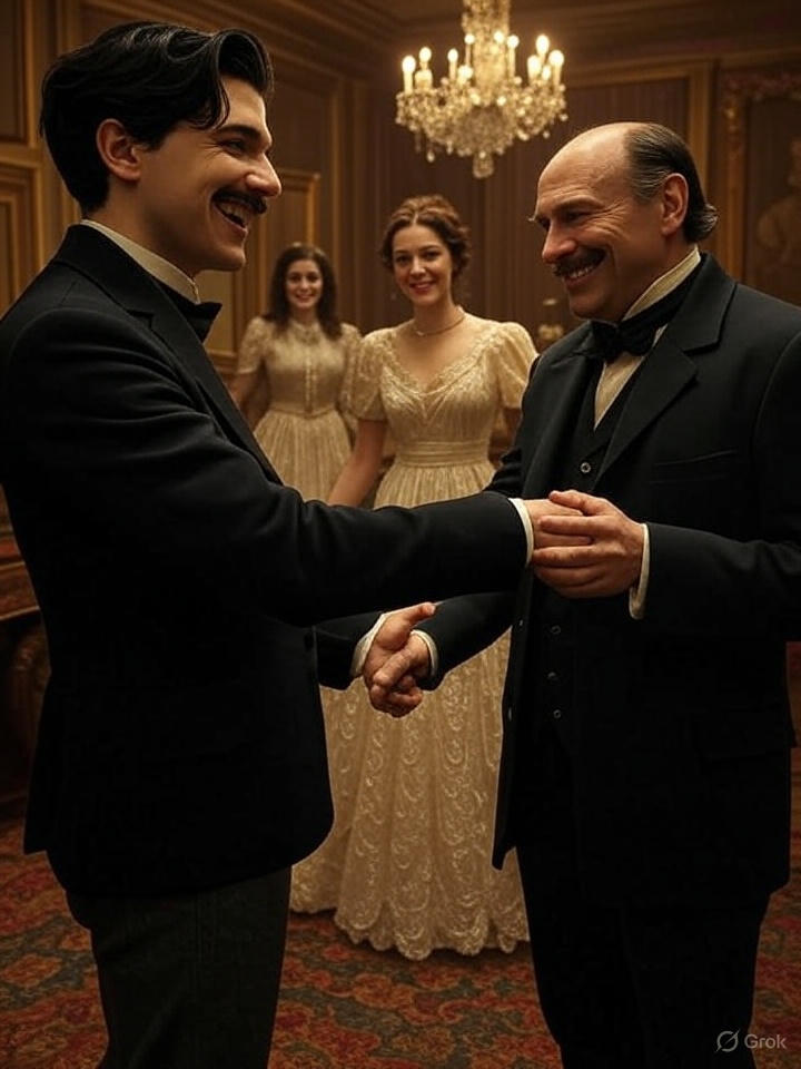 The young man who earlier deigned to throw glasses on the floor stood up, theatrically stiff, and extended his hand broadly.