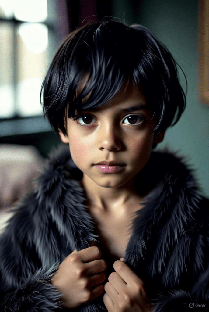Moving into the dimly lit room he saw someone that reminded him of Rafe clutching a dark fur blanket or robe around small shoulders and watching with big dark eyes. This boy’s hair was raven black and he looked Native American. He also looked small, scrawny and too young to be here.