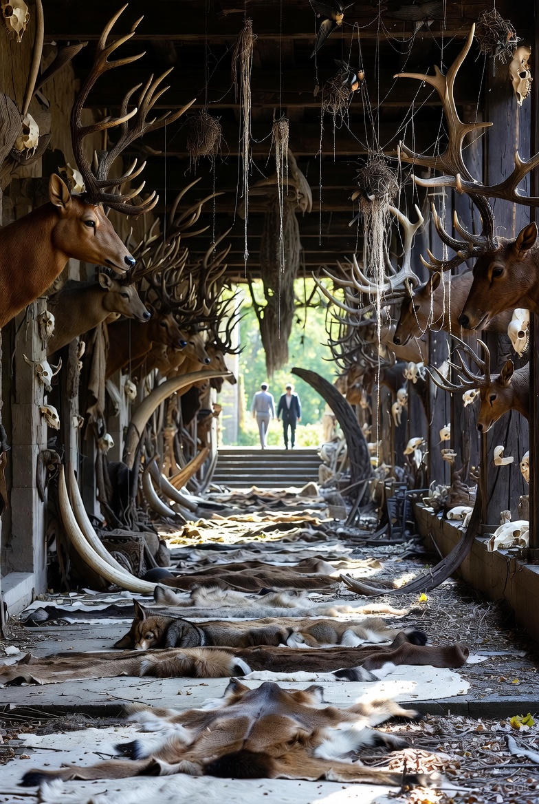 floor lay almost hairless wolf-pelts and worn deer blankets,