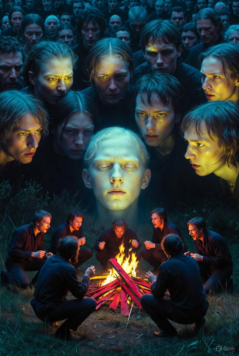 again with the glittering crown of the dead in the flickering of
