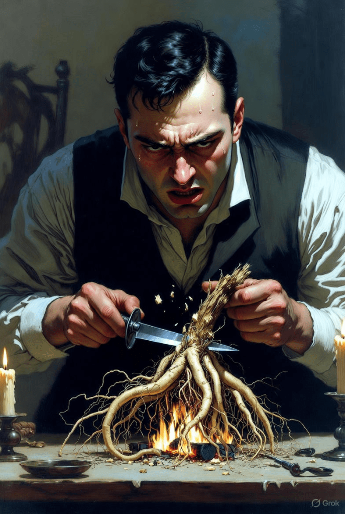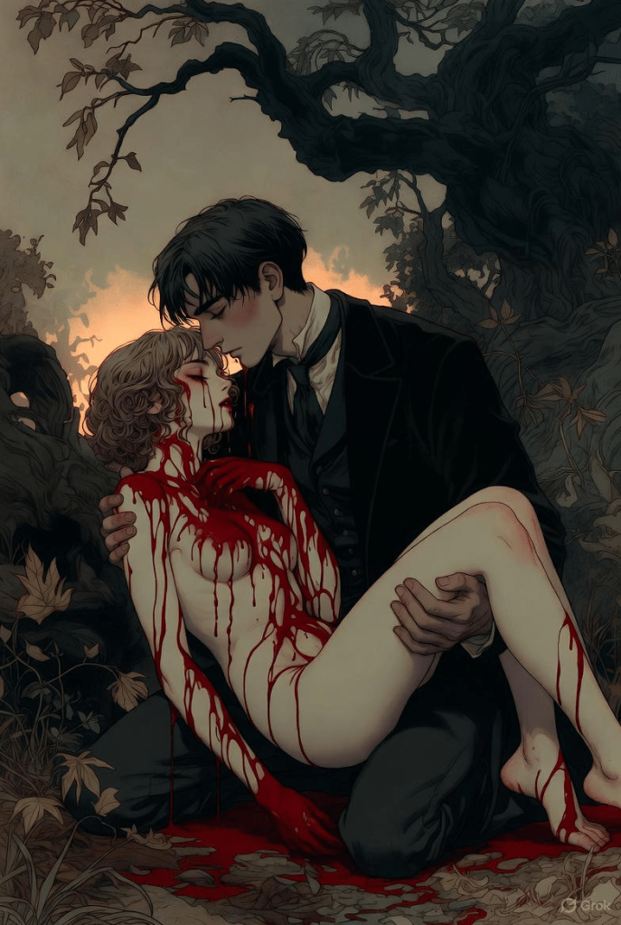 The coachman watched for a long time as Frank Braun went into the garden, spit, thoughtfully shook his head, then crossed himself. One evening Frieda Gontram sat on the stone bench under the copper beeches. He stepped up to her and offered his hand. “Back already Frieda?” “The two months are gone,” she said. He put his hand to his forehead. “Gone,” he murmured. “It scarcely seems like a week to me. How goes it with your brother?” he continued. “He is dead,” she replied, “for a long time now. Vicar Schrőder and I buried him up there, in Davos.” “Dead,” he responded. Then as if to chase the thought away he quickly asked, “What else is new out there? We live like hermits, never go out of the garden.” “The princess died of a stroke,” she began. “Countess Olga– ” But he didn’t let her continue. “No, no,” he cried. “Say nothing. I don’t want to hear. Death, death and more death–Be quiet Frieda, be quiet!” Now he was happy that she was there. They spoke very little to each other, but they sat together quietly, secretly, when the Fräulein was in the house. Alraune resented that Frieda Gontram was back. “Why did she come? I won’t have it! I want no one here except you.” “Let her be,” he said. “She is not in the way, hides herself whenever she can.” Alraune said, “She is together with you when I’m not there. I know it. She better be careful!” “What will you do?” he asked. She answered, “Do? Nothing! Have you forgotten that I don’t need to do anything? It all happens by itself.” Once again resistance awoke in him. “You are dangerous,” he said. “Like a poisonous berry.” She raised her lips, “Why does she nibble then? I ordered her to stay away forever!–But you changed it to two months. It is your fault.” “No,” he cried. “That is not true. She would have drown herself– ” “So much the better!” laughed Alraune. He bit his teeth together, grabbed her arms and shook her. “You are a witch!” he hissed. “Someone should kill you.” She didn’t defend herself, even when his fingers pressed deeply into her flesh. “Who?” she laughed. “You?” “Yes me!” he screamed. “Me! I planted the seed of this poisonous tree–so I am the one to find an axe and chop it down–to free the world of you!” “Do it,” she piped gently. “Do it, Frank Braun!” Her mockery flowed like oil on the fire that burned in him. Haze rose hot and red in front of his eyes, pressed stuffily into his mouth. His features became distorted. He quickly let go of her and raised his clenched fists. “Hit me,” she cried. “Hit me! I want you to!” At that his arms sank, his poor will drowned in the flood of her caresses. That night he awoke. A flickering light fell on him coming from the large silver candlestick that stood on the fireplace. He lay on his great-grandmother’s mighty bed. Over him, directly over him, the little wooden man was suspended. “If it falls, it will kill me,” he thought half-asleep. “I must take it down.” Then his gaze fell to the foot of the bed. There crouched Alraune, soft words sounded from her mouth, something rattled lightly in her hands. He turned his head a little and peered over at her. She held the dice cup–her mother’s skull, threw the dice–her father’s bones. “Nine,” she muttered, “and seven–sixteen!” Again she put the bone dice in the skull dice cup, shook it noisily back and forth. “Eleven,” she cried. “What are you doing?” he interrupted. She turned around, “I’m playing. I couldn’t go to sleep–so I’m playing.” “What are you playing?” he asked. She glided over to him, quickly, like a smooth little snake. “I’m playing ‘How it will be’, How it will be–with you and with Frieda Gontram!” “Well–and how will it be?” he asked again. She drummed with her fingers on his chest. “She will die,” she twittered. “Frieda Gontram will die.” “When,” he pressed. “I don’t know,” she spoke. “Soon, very soon!” He tightened his fingers together, “Well – and how about me?” She said, “I don’t know. You interrupted me. Should I continue to play?” “No,” he cried. “No! I don’t want to know!” He fell silent, brooding heavily, then startled suddenly, sat up and stared at the door. Light steps shuffled past. Very distinctly he heard the floorboards creak. He sprang out of bed, took a couple steps to the door and listened intently. Now they were gliding up the stairs. Then he heard her clear laughter behind him. “Let her be!” she tinkled. “What do you want from her?” “Why should I leave it alone?” he asked. “Who is it?” She laughed even more, “Who? Frieda Gontram! Your fear is too early, my knight! She still lives!” He came back, sat on the edge of the bed. “Bring me some wine!” he cried. “I want something to drink!” She sprang up, ran into the next room, brought the crystal carafe, let the burgundy bleed into the polished goblets. “She always runs around,” Alraune explained, “day and night. She says she can’t sleep, so she climbs through the entire house.” He didn’t hear what she was saying, gulped the wine down and reached the goblet out to her again. “More,” he demanded. “Give me more!” “No,” she said. “Not like that! Lay back down. You will drink from me if you are thirsty.” She pressed his head down onto the pillows, kneeled in front of him on the floor, took a sip of wine and gave it to him in her mouth. He became drunk from the wine, even more drunk from the lips that reached out to him. The sun burned at noon. They sat on the marble edge of the pool and splashed in the water with their feet. “Go into my room,” she said. “On my dresser is a hook, on the left hand side. Bring it to me.” “No,” he replied. “You shouldn’t fish. What would you do with the little goldfish?” “Do it!” she spoke. He stood up and w