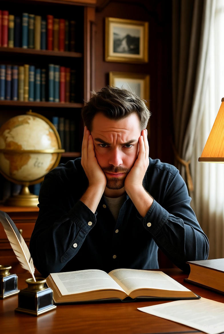 Falk entered his study, sat down at the desk, propped his head in both hands and groaned loudly.