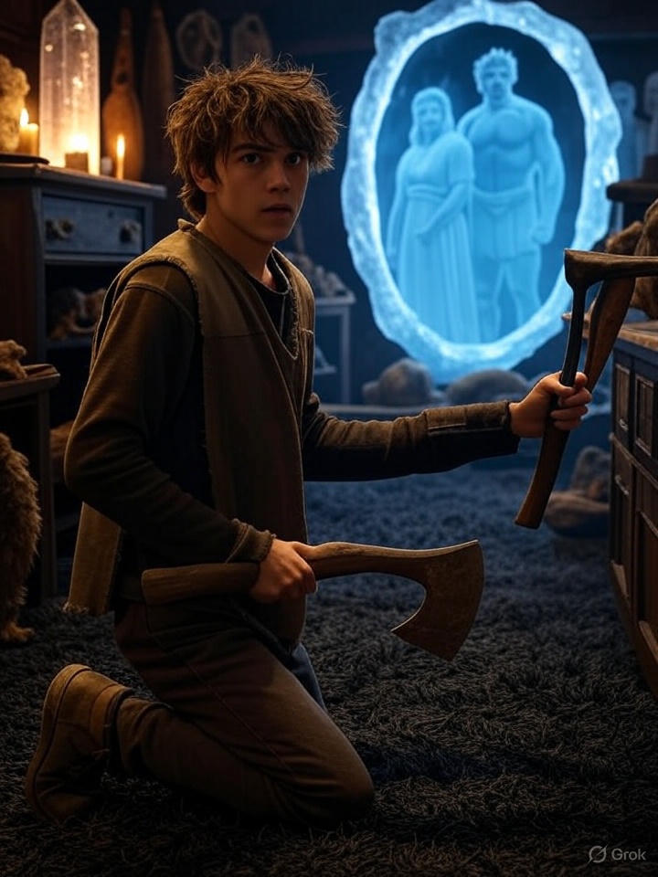 He wandered for an hour looking at various displays and getting an increasingly troubled feeling that something wasn’t right. He could believe one or two displays of meticulous craftsmanship and diversity. There were re-constructionists that studied the old ways of ancient civilizations and tried duplicating them. But this was different. It was as if someone had stepped back into time and brought back these items for sale in this curious shop. Touching a flint knife, he saw a flash—a warrior wielding it in a shadowed battle, his parents’ faces flickering beside a crystalline portal. The vision faded, leaving a hum in the air, the Wild whispering of past lives.