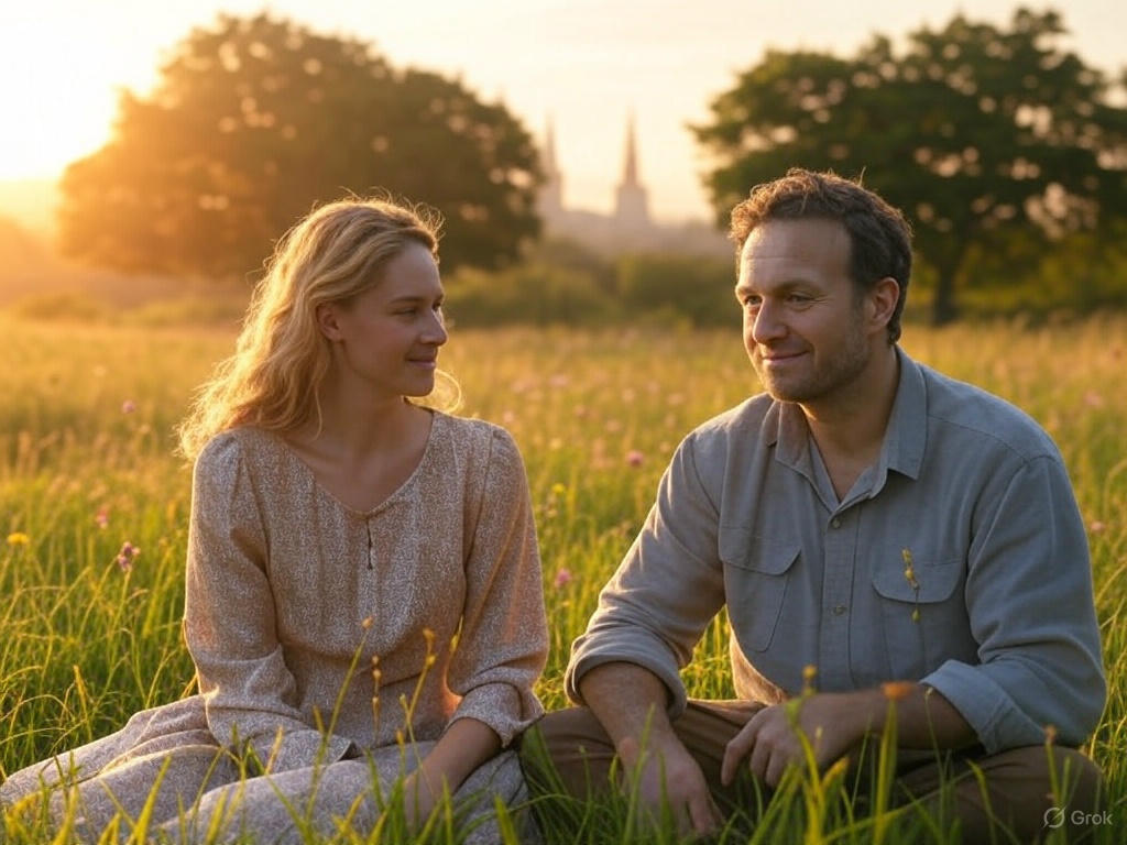 Rafe eased down into the sunlit meadow, his patched coat streaked with damp, settling against the soft earth with a sigh. His face softened, a sly grin tugging at his lips as he spun his knife in a slow, lazy arc, gray eyes tracing the golden glow around him. The wild surged within, a quiet fire, and his voice slipped out in a low quip: “Meadow’s quiet—stay close, love.” Mara knelt beside him, her dark cloak brushing against the clover, raven hair swaying free in the breeze, catching the light in shimmering strands. Hazel eyes glowed with a tender warmth as she met his gaze, her voice weaving a calm melody: “Now’s wild—melt with me.” Her hand grazed his, fingers brushing with a spark that made the wild flare, his grin softening as their eyes locked, the pulse of OAKenspire deepening around them—petals sighed on the wind, and the OAK stirred.