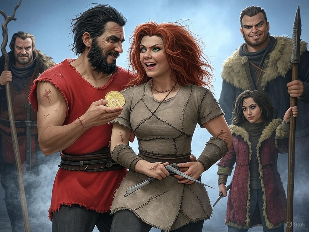 A reptilian hiss slithered low—the sentient snare tightened, cold tendrils threading jagged claws through Neon’s wild, sapping its hum—rustic folk huddled near, clutching crude spears, their murmurs rising sharp with fear. Becca prowled a shack’s edge, her tunic—dark, torn—stretched taut over broad shoulders, shaved head gleaming—blue eyes flared fierce, axe sharp in her grip, yin’s wild growling low as she hacked a twisted vine—her breath flared hot. Rafe darted through the mist, his tunic—coarse, patched—flapping loose, hazel eyes glinting mischief—his knife twirled, steel flashing, yang’s playful spark threading his wiry frame as he sliced a glowing knot—a grin flashed sly. Cal stood tall near a sagging hut, his tunic—soft, faded—hanging loose, tangled brown hair brushing his brow—gray eyes steadied calm, spear light in his grip, yang’s quiet strength pulsing steady as he prodded a quivering root—his stance rooted firm. Valentine circled the hub’s rim, his coat—thick, matted—bristling faint, yellow eyes glinting sharp—claws scraped wood, yang’s instinct rumbling low through his shaggy stride, ears twitching at the reptilian snarl.