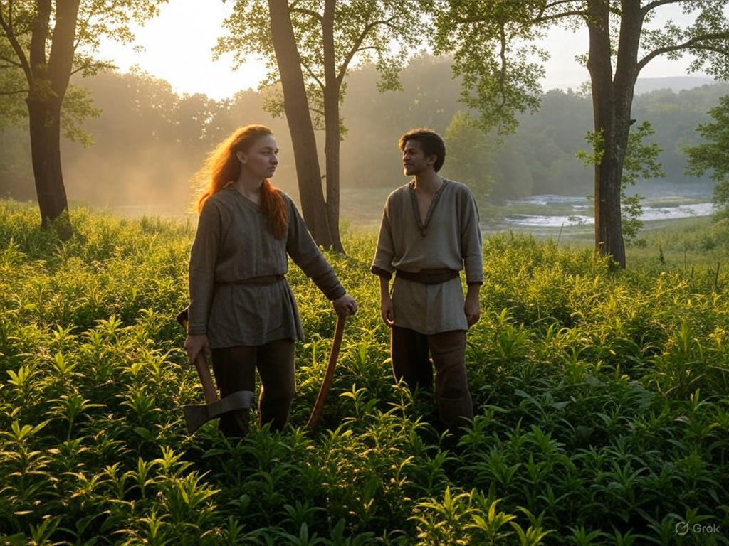 The meadow seemed to breathe with them, clover blooming in vibrant patches, the wind carrying whispers of life through the grass. Rafe’s hand stilled, the knife resting in his lap as his callused fingers met her softer ones, a quiet warmth spreading through him. His quip came softer now, almost a murmur: “You’re calm—wild hums.” Mara’s gaze held his, hazel eyes shimmering like the dawn, her voice lilting low: “You’re sharp—sink in.” Her fingers laced through his, the wild surging between them, a steady current that eased his chest, his breath slowing as he quipped: “Never stopped—till you.” Her chant hummed softly, a melody that wove through the air, petals brushing her cheek as they fell, the wild pulsing in time with OAKenspire’s green heart—chill faded, the wild churned gently, and the OAK thrummed with a deep, resonant peace.
